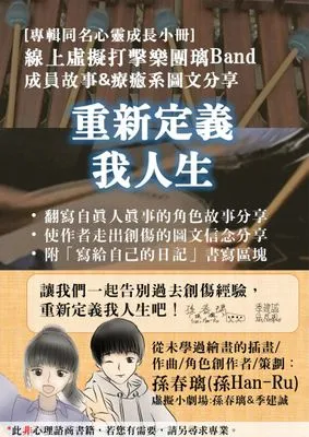 免費試閱續璃Band推出原創勵志療癒系專輯——《重新定義我人生》以後,鍵盤打擊樂十年以上經驗、另有專業但從未學過繪畫的作者兼繪者孫春璃(孫Han-Ru),出版了與專輯同名的療癒系圖文分享與璃Band角色成員(孫春璃&季建誠)故事。