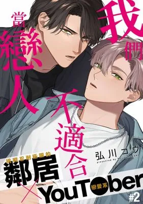沉默的維修人員・熊澤每天都被專做如何受歡迎這種輕浮主題的直播主鄰居・晃一吵得心情很差。未料去勸導時,迎面而來的卻是名討喜又笨笨的如柴犬般的美男子。由於被晃一喋喋不休的吵著鬧著,熊澤決定乾脆用濃厚的親吻逼他住嘴!怎知從這天起,無法忘懷這個吻的晃一竟沒有自覺的露出性感氣息,反而開始挑戰熊澤的忍耐極限⋯!?共40頁我們不適合當戀人(第8話)