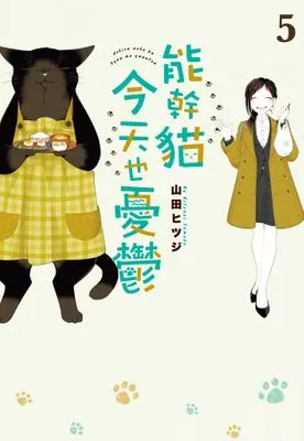 因為討厭水,所以諭吉打掃浴室時會穿上全套生物防護服;買菜時超市店長會因為摸到遞過零錢的肉球而暗自心動;出門玩時會特地在背後黏上一條拉鍊假裝是穿玩偶裝,但偶爾也會被認為是熱愛偶裝的變態;興趣是購入各式各樣的圍裙跟看電視節目學新菜;一個眼神就可以趕走盤旋在垃圾場上的烏鴉;心情煩躁時就自己開一條啾嚕,拌一盆貓草沙拉來吃……共132頁能幹貓今天也憂鬱(09)